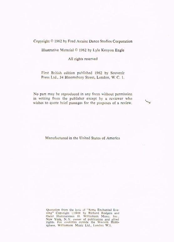 Souvenir Press Ltd, London 1962, first British edition h/b with dust jacket Vg/vg, 183pp, illustrated step by step instructions for twelve popular ballroom dances. Small signs of wear on dust jacket -now in protective acid free archive film.